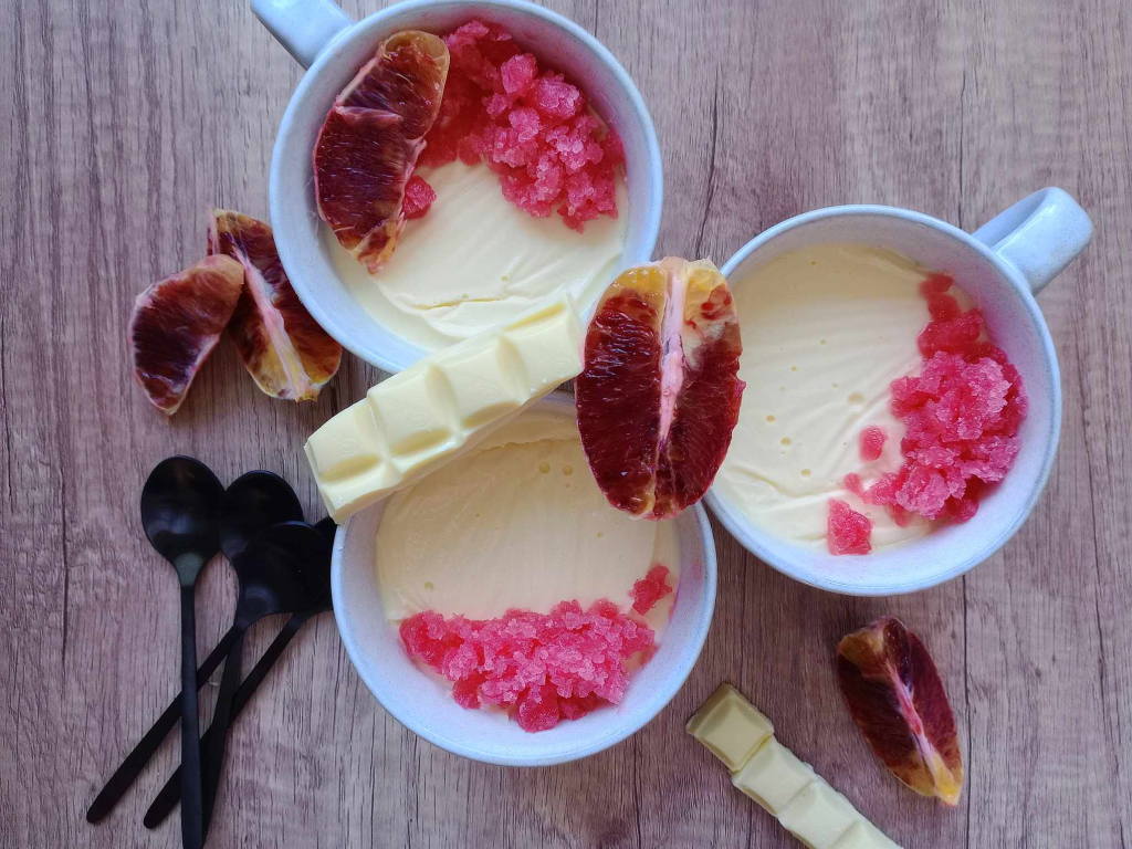 When ready to serve, you can serve the panna cotta in the cups, or you may prefer to turn them out onto a plate. To turn them out, run a sharp thin knife or off-set spatula in between the cup & dessert. If they are been stubborn (which sometimes happens!) you can run the cup under some hot water for a few sconds & that should do the trick. Top the panna cotta with as much or as little of the granita as you like, serve immediately & enojy!