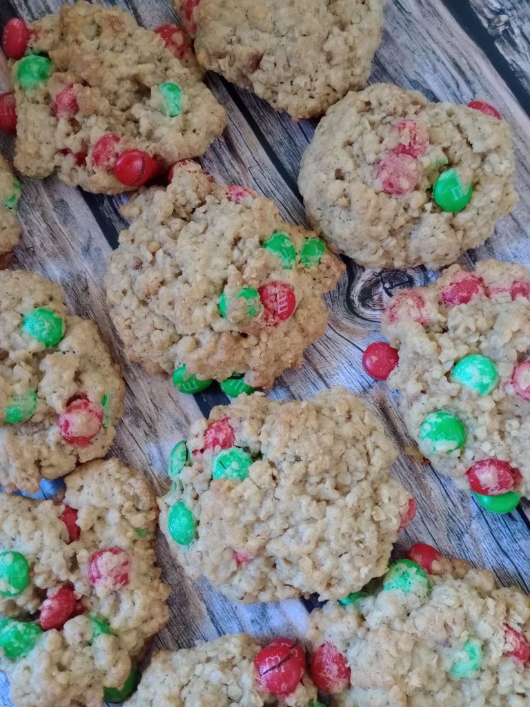 Before I had children of my own, I worked as an Au Pair. The morning before one particular job interview for a family, I made a batch of these cookies. I bought some along with me to the interview & everyone loved them! Bonus, I got the job! We all joked that it was because of the delicious cookies that I was hired & somehow they became known as mind control cookies. Years have passed since I made that first batch & those children are now teenagers & still ask me to make them! I usually use regular milk chocolate chips, but as it’s christmas I thought why not add some red & green M&M’s?!